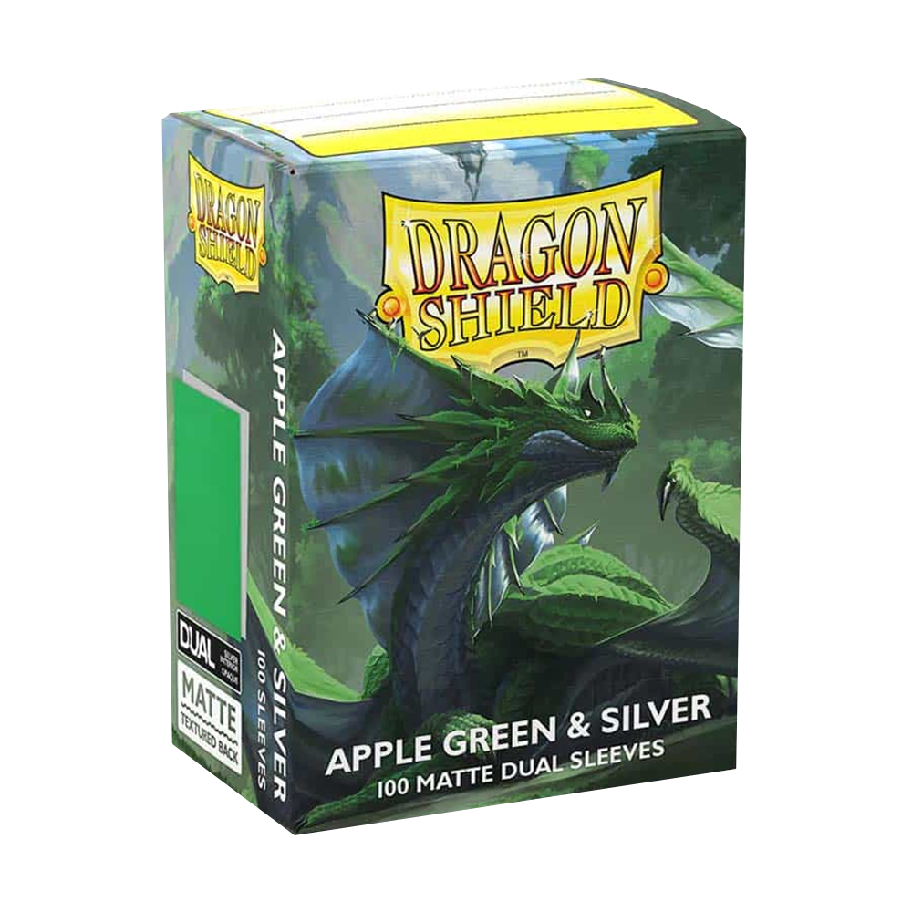 Be the first to review “Dragon Shield Sleeves – Standard size – Matte Dual – Apple Green & Silver (100 Sleeves)”