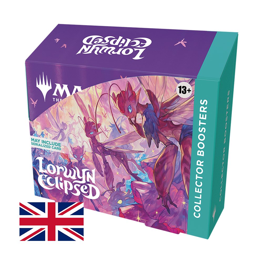 Return to the land of light and shadow, embrace the powers of order and chaos, and discover your true self. Each Lorwyn Eclipsed Collector Booster includes 11–12 Traditional Foil cards, with 5 cards of rarity Rare or higher and 4 Uncommon, 5 Common, and 1 Land cards. Serialized Headliner Mythic Rare in <1% of boosters.
