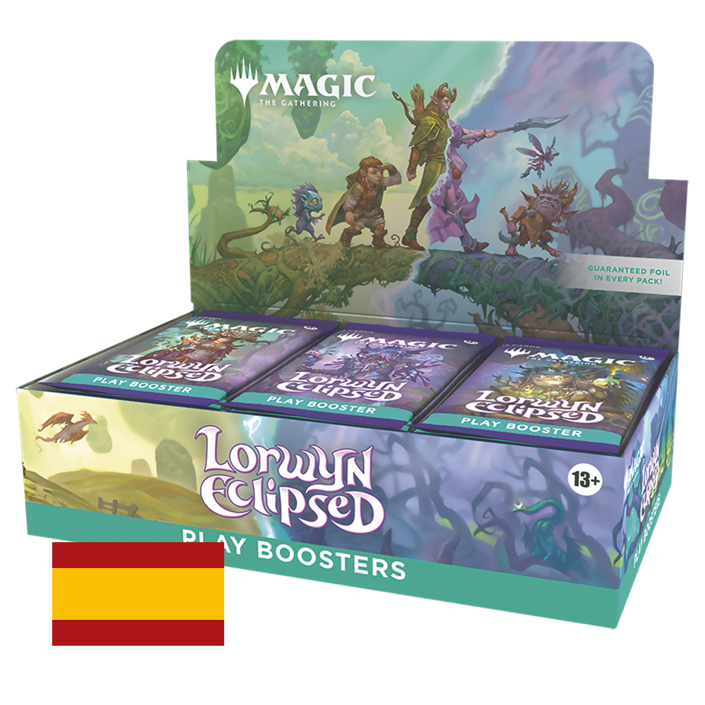 Return to the land of light and shadow, embrace the powers of order and chaos, and discover your true self. Lorwyn Eclipsed Play Boosters may contain these cards: ECL 1–351; SPG 129–148. Each Play Booster includes 1–4 cards of rarity Rare or higher (2: 27%; 3: 2%; 4: <1%), and 3–5 Uncommon, 6–9 Common, and 1 Land cards. 1 card of any rarity is Traditional Foil. Foil Borderless Mythic Rare in <1% of boosters. Traditional Foil Land replaces a Land in 20% of boosters.