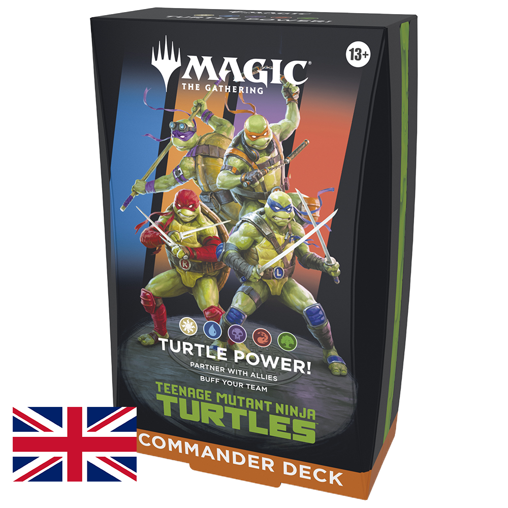 This Turtle Power! Magic: The Gathering | Teenage Mutant Ninja Turtles Commander Deck includes one 100-card deck with 43 new cards, deck box, 10 doubl